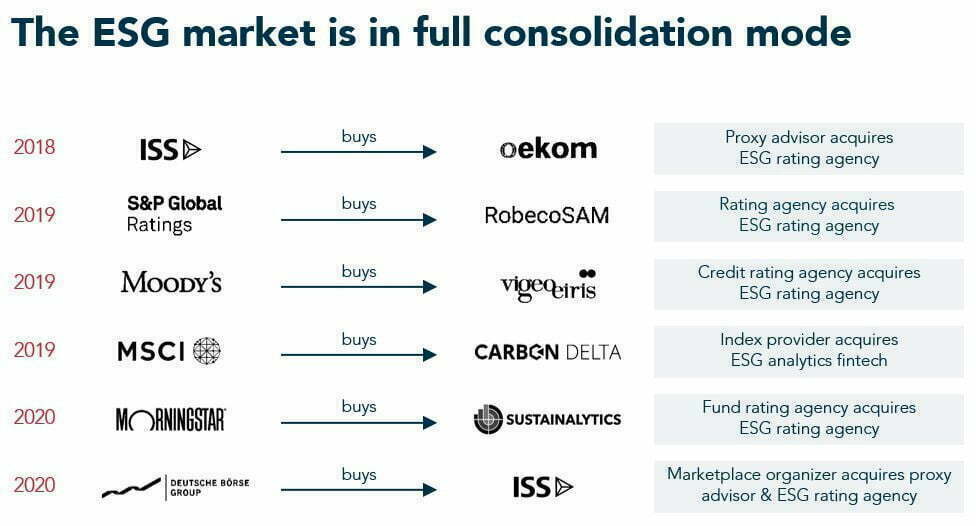 But while ESG ratings are not directly comparable, at least the ESG rating agencies themselves can be compared. For example, the consulting firm SustainAbility conducted a provider comparison in its 2019 and 2020 “Rate the Raters” reports. A total of eight international rating providers were examined: With ISS ESG, MSCI ESG, Sustainalytics and RobecoSAM (meanwhile taken over by S&P), four classic ESG rating agencies were examined, which are the most renowned internationally. The other four were Bloomberg ESG, CDP, FTSE Russell & Thomson Reuters ESG.
